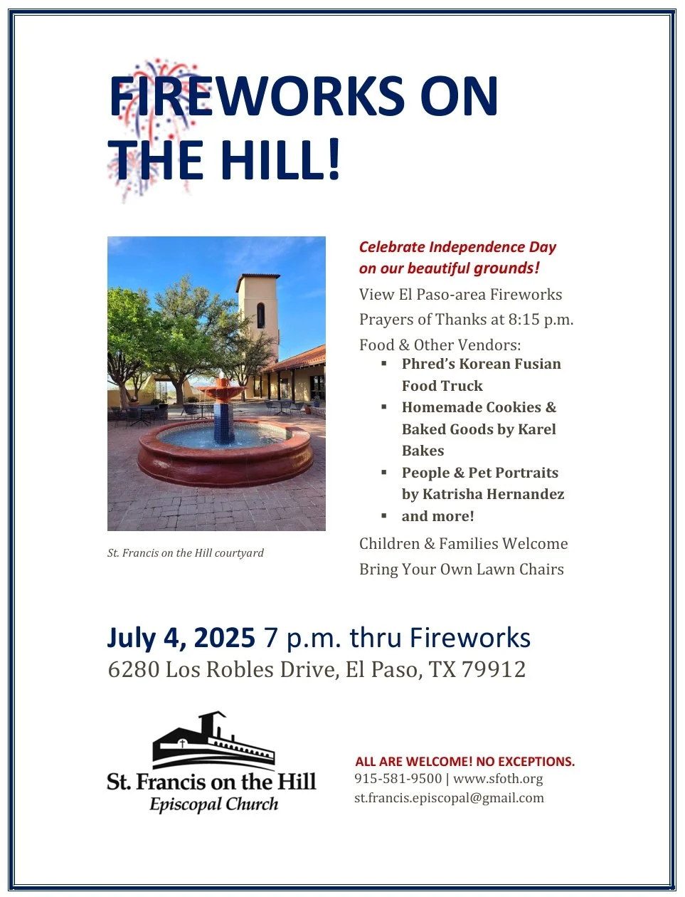 Situated on El Paso’s west side, St. Francis on the Hill is an inclusive, Christ-centered community where all are loved, honored, and respected. To learn more about our values, click below.